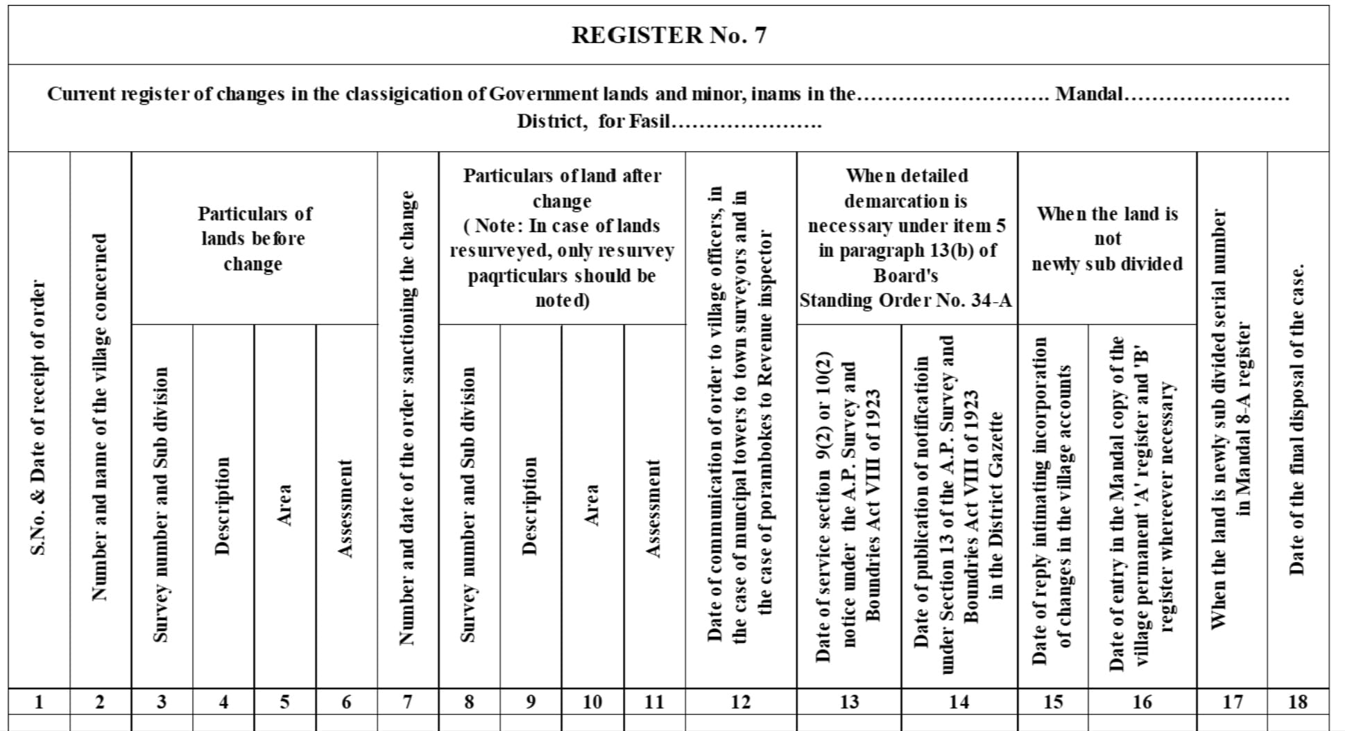 - All applications for assignment of government wasteland or Poramboke land are entered in this register.